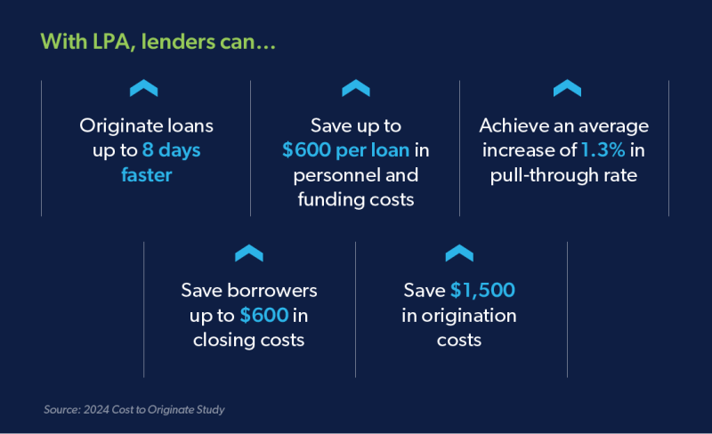 "We’re seeing amazing results already, with only a few months into using LPA. LPA’s impact on the business has helped us get more loans out the door and more borrowers into homes,” says Deb Jones. “We already have plans in motion to continue to optimize the LPA experience and can’t wait to see what kind of growth that brings to our business."