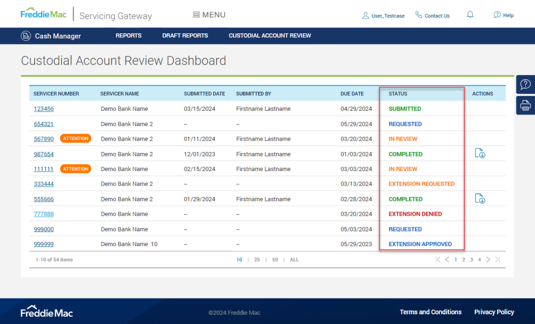 Status tracking: Servicers can track the status of their review directly from the Cash Manager, providing transparency at every step.