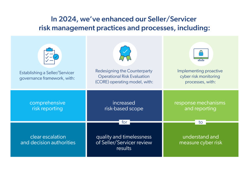 Although we already have a robust third- and fourth-party risk management framework, we continue to proactively test and enhance it to address new and emerging risks. This is paramount so we can continue to effectively leverage our counterparties and their service providers and make home possible for borrowers during all market conditions.
