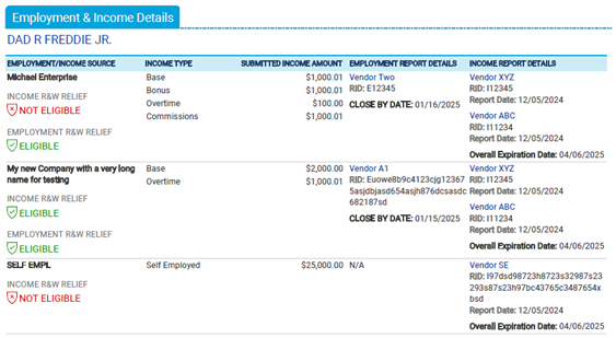 - Whether using AIM or not, you’ll see the different income types used, the submitted income amounts, clearly stated Close By and Expiration Dates and income and/or employment R&W relief eligibility results.