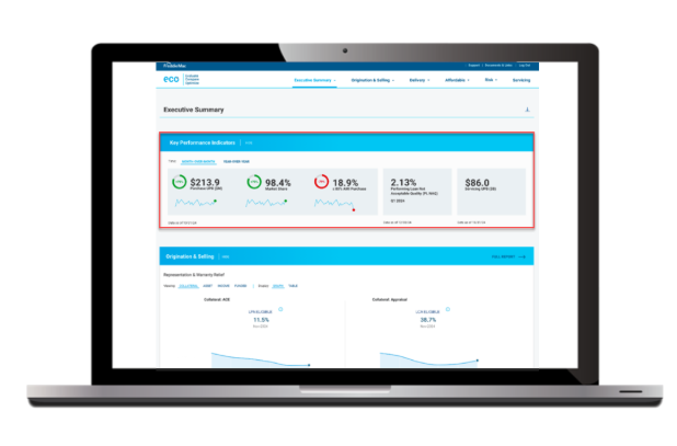 ECO gives you a look at all loans funded based on the data you provide and filters it across several different paths, such as loan attributes, servicing option, execution method and delivery channel. There are also reports enabling you to track the Prepayment Speeds and Super Conforming volume.