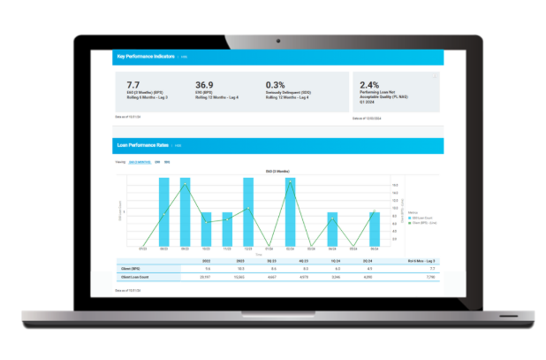 ECO enables you to evaluate your performance, compare performance to your competitors, and optimize lending strategies. Monitor your loan data and quickly identify trends or anomalies to make decisions based on data and analysis. Get an end-to-end view of your portfolio, combined with synthetic peer data. And through ECO’s My Team feature, you can easily see the members of your account team and how to contact them if you have any questions or concerns.
