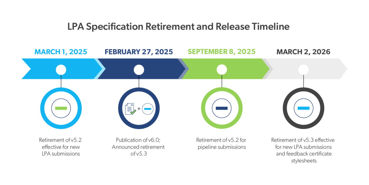 - Specification version 5.3 – If you’re still using v5.3, please begin to make plans to transition to a newer version of LPA.