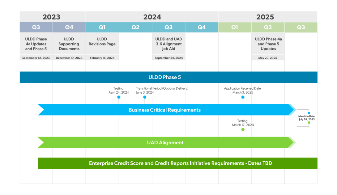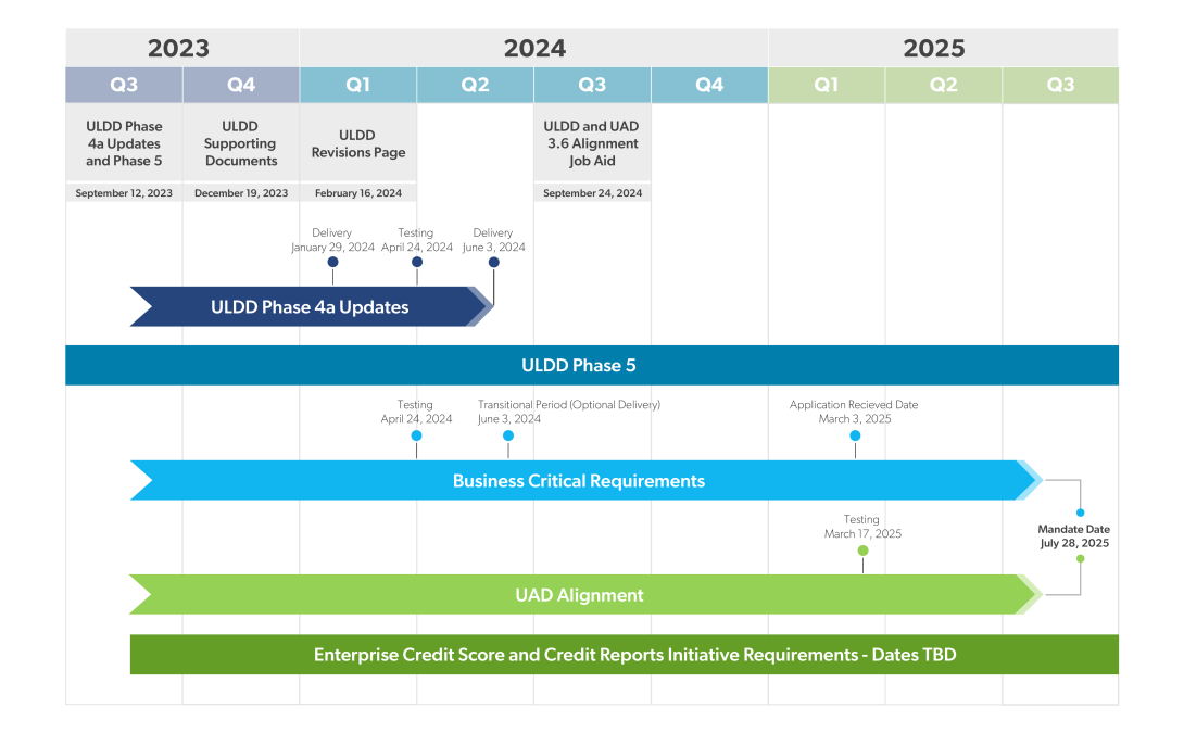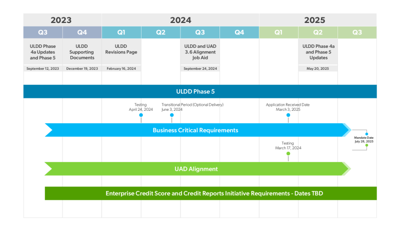 The Uniform Loan Delivery Dataset (ULDD) revisions webpage is designed to assist you with loan delivery requirement revisions to ULDD since the publication of the last Appendices A and D on May 20, 2025. These revisions include ULDD specification updates and ULDD impacts that have been previously communicated in the Single-Family Seller/Servicer Guide (Guide) Bulletins.